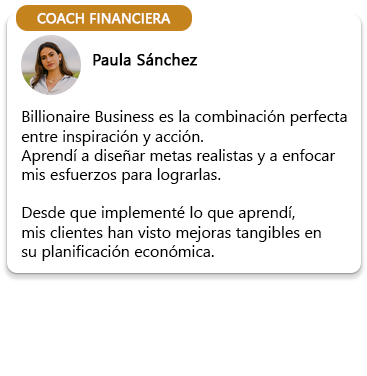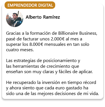 Con Billionaire VIP no solo aumentarás tus ingresos, sino que también conseguirás mayor estabilidad y libertad para llevar tu empresa exactamente al lugar que deseas.